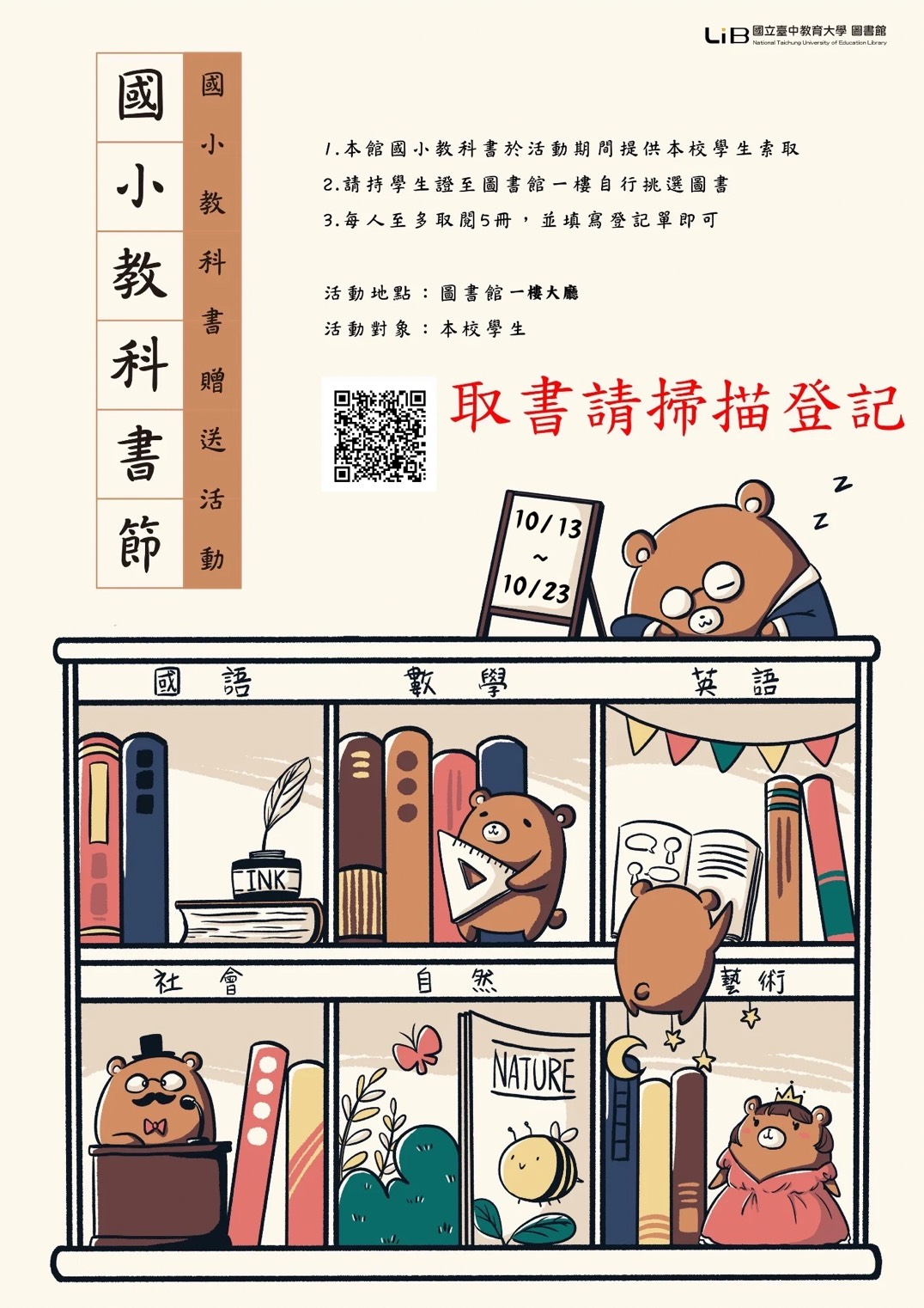 1.本館國小教科書於活動期間提供本校教職員工生索取。
