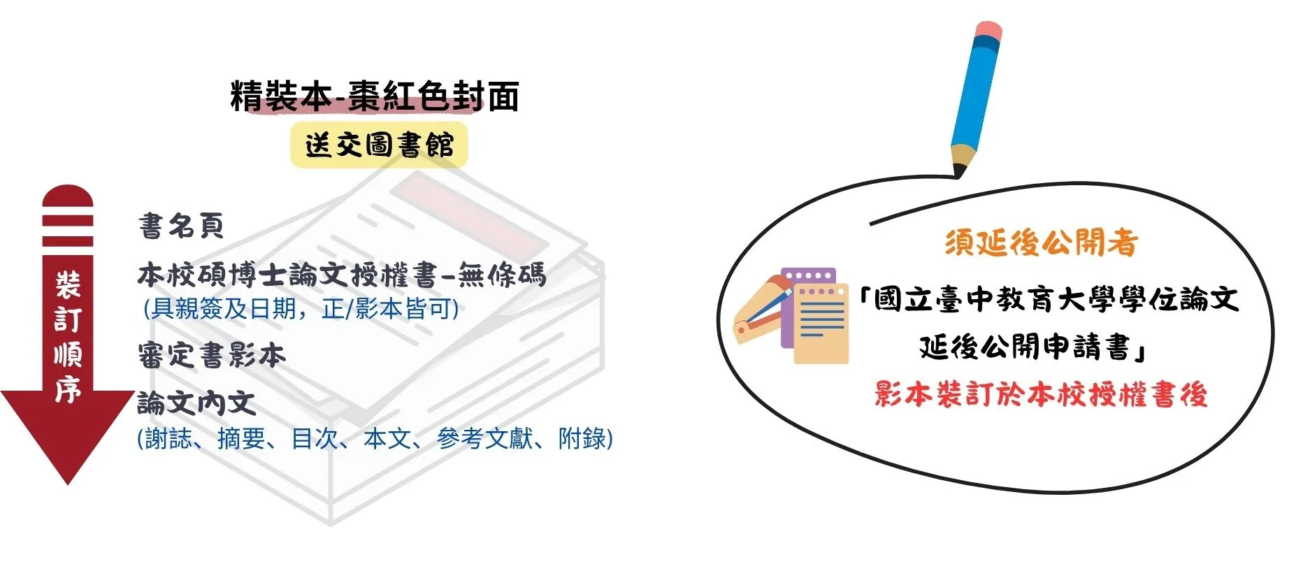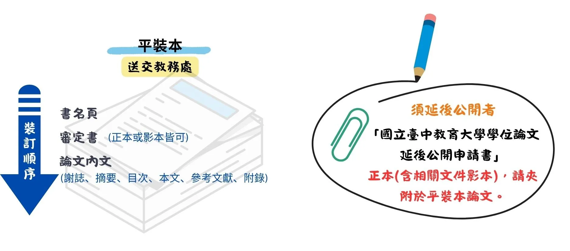 小提醒: 收到圖書館的「審核通過通知信」後,才是紙本裝訂的最佳時機。